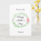 Eine grüne Aquarelllaurel und rosa Blume hübsche Muttertagskarte für die Ehefrau, die Sie leicht mit ihrem Namen personalisieren können. Die Insider-Nachricht dieser hübschen Müttertagskarte liest eine herzliche Nachricht, die Sie auch personalisieren können, wenn Sie gewollt haben. Der Rücken hat den gleichen grünen Lorbeer mit rosa Blume, wo man das Jahr verbringen kann. Eine süße Mutter-Tag-Sake für sie.