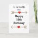Eine glückliche 16. Geburtstagskarte mit glitzernden Pfeilen und roten Herzen. Du wirst mit ihrem Namen personalisieren können. In dieser Nichte aus dem 16. Jahrhundert heißt es: "Wir wünschen euch heute und jeden Tag Liebe, Glück und Lachen!!" Du kannst deine Geburtstagsnachricht leicht bearbeiten. Auf der Rückseite dieser 16. Geburtstagskarte heißt es Happy Birthday.