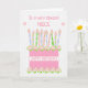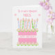 Eine sehr hübsche Geburtstagskarte für Ihre Nichte mit einem rosa Geburtstagskuchen mit vielen gemusterten Kerzen. Der Kuchen ist rosa, mit einem Polka Dot-Muster und mit rosafarbenen, albertinischen Rose dekoriert, die von Hand in Aquarellfarben gemalt werden. "Happy Birthday!" ist in passendem Rosa auf einer weißen Band um den Kuchen geschrieben. Über den Kerzen steht: "Zu einem ganz besonderen NIECE mit einem winzigen rosa Herz an jedem Ende des Wortes, 'NIECE'. Die Insider-Nachricht ist nur ein Vorschlag und Sie können sie bearbeiten oder entfernen, wenn Sie möchten.