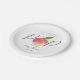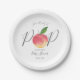 Diese kleinen Pfirsichzettel-Teller sind perfekt für alle, die dieses Jahr eine Babydusche feiern. Das Design verfügt über einen handgemalten Aquarellpfirsich auf einem einfachen weißen Hintergrund mit leicht zu personalisierender Vorlagenformulierung.