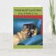 Für Son, herzlichen Glückwunsch zum Abschluss, Papier Grußkarte. Paws & Reflect-Nachricht mit einem deutschen Schäferhund, der auf einem blauen Ledersofa ruht und eine Graduationskappe trägt. Passen Sie das Cover und den Innen-Text nach Ihren Wünschen an. Art, Bild und Vers Copyright © Shoaff Ballanger Studios, 2023.