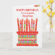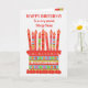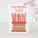 Sie können das Alter zu dieser bunten Geburtstagskarte für Ihren Stiefel hinzufügen, mit einem Erdbeergeburtstorte. Der Kuchen hat viele Kerzen mit verschiedenen Mustern und es gibt eine gemusterte Band um den Kuchen mit bunten Sommerfrüchten - Erdbeeren, Himbeeren, Limetten und Orangenscheiben. Über dem Kuchen, der Gruß, in roter Schrift, ist "GLÜCKLICHER GEBURTSTAG zu einem ganz besonderen Step Son" und auf dem Kuchen gibt es einen Platz, um das Alter hinzuzufügen, gefolgt von "Jahren alt heute!" in weißer Schrift. Sie können die Insider-Nachricht auf Wunsch anpassen; Sie können den Schriftart, die Farbe und die Nachricht ändern.