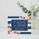 (für USPS) Gold Floral Navy Blue Streifen Save the Date Postcard. (1) Diese Version basiert auf den USPS-Bestimmungen. (2) Für weitere Anpassungen klicken Sie bitte auf den Link "Weiter anpassen" und verwenden Sie unser Designwerkzeug, um diese Vorlage zu ändern. (3) Wenn Sie Hilfe oder passende Artikel benötigen, kontaktieren Sie mich bitte. (4) Originalfassung: https://www.zazzle.com/239366022254432925