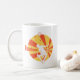 Die Tasse zeigt einen furchtlosen Skater, der in Gelb und Orange springt.