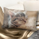 Personalisiertes Kissen mit einem bemalten niedlichen Kätzchen, das auf flauschigen Hintergrund schläft. Der Text ist optional.