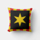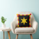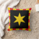 "Sable, ein Mullet von sechs Punkten oder innerhalb einer Schnürung oder mit Schlägen." Abzeichen für das Fürstentum Vindheim in der Gesellschaft für kreativen Anachronismus. Die Kissenrückseite ist ein mittelalterliches Muster in der Farbkoordinierung.