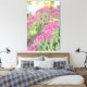 Moderne, blumengedehnte Leinwand mit fuschia-rosa Blume. Warmer Garten gefärbt Druck.
