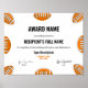 Es handelt sich um einen Fußball-Zertifikat-Award für Teilnehmer und Spieler, der in der Sportzeremonie für Fußballwettbewerbe präsentiert wird. Personalisieren Sie Ihre Informationen in der Vorlage, indem Sie Komponenten hinzufügen oder entfernen. Es kann entweder heruntergeladen oder gedruckt werden.