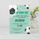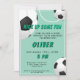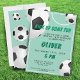 Fußball Ball Spaß Sport Kindergeburtstag Einladung. Das Design hat einen lustigen Text "Kick up some fun" und Fußball Bälle auf einem grünen Hintergrund. Personalisieren Sie Ihre Daten.