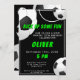 Fußball Ball Spaß Sport Kindergeburtstag Einladung. Das Design hat einen lustigen Text "Kick up some fun" und Fußball Bälle auf einem schwarzen Hintergrund. Personalisieren Sie Ihre Daten.