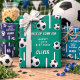 Fußball Ball Kindergeburtstag Wrapping Paper Sheets. Das Design hat einen lustigen Text "Kick up some fun" und Fußball Bälle auf blauem und grünem Hintergrund. Personalisieren Sie mit Ihrem Alter und Namen.