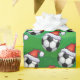 Fußball-Ball-Weihnachtsmannmütze auf Grün Geschenkpapier
