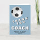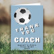 Modern Soccer Blush Blue Danke Coach Card. Die Karte hat einen schwarz-weißen Fußball. Eine tolle Karte für Sporttrainer, Schultrainer, Mama- oder Papa-Trainer, etc. Passen Sie jeden Text auf der Karte an. Geben Sie den Namen, den Teamnamen und das Jahr des Trainers ein.