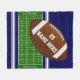 Football Field PERSONALISIERT Football Fleece Blanket mit IHREM TEXT und FARBEN. Ändern Sie den blauen und weißen Hintergrund und den Text in Ihre Fußball-Dekorfarben (Anweisungen unten). 3 Fußball-Decken: GROSS, MITTEL UND KLEIN. Rufen Sie Designer Linda auf, um die Design- und Farbänderungen für Sie kostenlos durchzuführen.