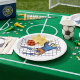 Ein Fußballspiel, das ein Tor rette. Dieses Design wirkt auf diese Paper-Teller sehr effektiv