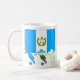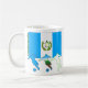 Drei Fußballspieler in der Silhouette spielen vor der guatemaltekischen Flagge. Ländername Guatemala ist auf der Seite