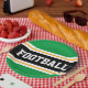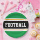 Dieses sportliche, sportliche Design mit feinem FOOTBALL-Text in einem breiten, schwarzen Mitte horizontalen Streifen mit weißen und goldgelben Rennstreifen gegen kelly grüne Außenstreifen. Der Text kann personalisiert sein.