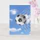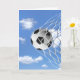 Schwarz-Weiß Fußball im Sportnetz mit Himmelshintergrund. Text kann geändert werden.