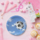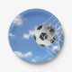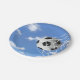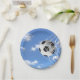Schwarzweißball im Sportnetz mit Sommerhimmel