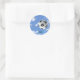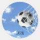 Schwarz-Weiß Fußball im Netz mit einem individuellen Namen auf Himmelshintergrund Der Name kann bearbeitet werden.