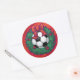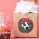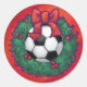 Fußball in einem Weihnachtskranz auf Rot Runder Aufkleber