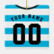Einfach zu bearbeiten Fußball / Fußball / Sport Jersey Feiertagsschmuck, verwenden Sie einfach die Boxen auf der rechten Seite des Bildes, um Ihre eigene Wahl von Namen und Nummer einzufügen. Dieses Trikot hat ein V-Halsband und ein helles blaues Hoops/Streifen Muster. Wenn Sie ein individuelles Design gewollt haben, das in einem bestimmten Farbschema erstellt wurde, kontaktieren Sie mich bitte über den Link 'Kontakt mit diesem Designer' unten. Einzigartige, personalisierte, maßgeschneiderte Ornamente, perfekt für jeden Feiertag, ob Weihnachten, Geburtstag, Hanukkah, Hochzeit und viele andere Anlässe! Günstige Geschenkideen für Sportfans oder Spieler in Ihrem Leben.