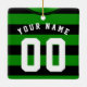 Easy to edit soccer / Fußball / Sport jersey holiday ornament / decoration, just use the boxes to the right of the image to einsatz your own choice of name and number. This jersey has a v-neck collar design, and black hoops / pattern Stripes. The background color can be change from green to your etwas of color, just click on 'CUSTOMIZE'. You can add your logo or text to the front of the jersey. If you want a custom design made in a specific color scheme please contact me using the 'Contact this Designer' link below Einzigartig, personalized, custom ornaments, perfekt for any holiday or celebration, be it Christmas, birthday, hanukkah, wedding and many other chance! Great gift ideas for the sports fan or player in your life.