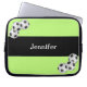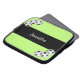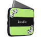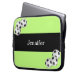 Diese Laptop-Computer Hülse wird mit Schwarzweiss-Fußbalbällen auf einem grünen und schwarzen gestreiften Hintergrund der Kiwi verziert, und personalisiert mit Namen oder anderem Text. Es ist einfach, Beispieltext zu ändern oder zu löschen. Eine was für wunderbare Weise, Ihren Laptop zu schützen. Wunderbares Geschenk für Fußballspieler, Fans oder Trainer. Alle Rechte vorbehalten © Alan 2014 u. Marcia Socolik.