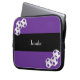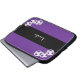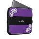 Diese Laptop-Computer Hülse wird mit den lila und weißen Fußbalbällen auf lila und schwarzem gestreiftem Hintergrund und personalisiertes mit Namen oder anderem Text verziert. Es ist einfach, Beispieltext zu ändern oder zu löschen. Eine was für wunderbare Weise, Ihren Laptop zu schützen. Wunderbares Geschenk für Fußballspieler, Fans oder Trainer. Alle Rechte vorbehalten © Alan 2014 u. Marcia Socolik.