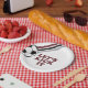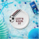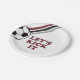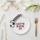 Lass es uns kick! Fußball Geburtstag Teller mit Maroon und schwarzen Streifen und Fußball.