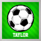 Coole, farbenfrohe Kinderfußball, Fußball, Schwarz-Weiß-Ball, Fußballspieler, Trainer, Sportdesign auf leuchtend neonkalk grünen Streifen Muster. Perfektes Geschenk für Baby, Kleinkind, Kinder, Kinder, Jugendliche oder Erwachsene! Das Design wird personalisiert, indem ein Kindername oder ein eigener Text mit sportlich-sportlich-sportlich-weißem Schriftart hinzugefügt wird. Besuchen Sie unseren Shop, Birthday Party House, für mehr große personalisierbare Jungen und Mädchen Produkte!