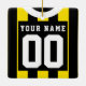 Einfach zu bearbeiten Fußball / Fußball / Rugby / Sport Jersey Urlaubssornament, verwenden Sie einfach die Boxen auf der rechten Seite des Bildes, um Ihre eigene Wahl von Namen und Nummer einzufügen. Dieses Jersey Design ist Gold und schwarze Streifen mit Kragen und Knöpfen. Die Hintergrundfarbe kann geändert werden, klicken Sie einfach auf 'ANKUNFT'. Wenn Sie ein individuelles Design gewollt haben, das in einem bestimmten Farbschema erstellt wurde, kontaktieren Sie mich bitte über den Link 'Kontakt mit diesem Designer' unten. Einzigartige, personalisierte, maßgeschneiderte Ornamente, perfekt für jeden Feiertag, ob Weihnachten, Geburtstag, Hanukkah, Hochzeit und viele andere Anlässe! Günstige Geschenkideen für Sportfans oder Spieler in Ihrem Leben.