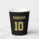 Fußball schwarz und Gold benutzerdefinierte Jersey-Namen Nummer Geburtstag Paper Cups. Der sportliche Stil. Passen Sie es mit Ihrem Namen, Alter, Jahr, Nummer oder Namen des Sportteams an.