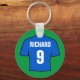 Geschenk für einen Fußballfan. Schlüsselring mit einem Fußball Shirt in blau. Personalisieren Sie Ihre Auswahl an Namen und Nummern.