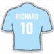 Fußball-Aufkleber. Fußball Shirt Design in hellblau. Personalisiert mit Ihrer Wahl von Name und Nummer.