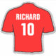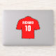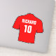 Fußball-Aufkleber. Fußball Shirt Design in Rot. Personalisiert mit Ihrer Wahl von Name und Nummer.