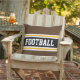 Dieses sportliche, farbenfrohe Design zeichnet sich durch einen athletischen FOOTBALL-Text in einem schwarzen, hervorgehobenen Mittelstreifen mit weißen und gelben Rennstreifen gegen dunkelbraune Außenstreifen aus. Der Text und die Farben in diesem Design können personalisiert sein.