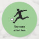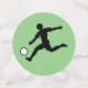 Der Fußballspieler in dieser Grafik tritt einen Fußball, bereit zu schlagen und das Spiel zu gewinnen. Diese hellgrüne Konfetti erzeugt einen lustigen Effekt mit dem Striker auf der Vorderseite jedes einzelnen und einem optionalen Text (Löschen des Platzhaltertextes um schlicht behalten) auf der Rückseite des großen Kreises, und ein optionales Datum auf der mittleren. Der kleine Kreis wurde aus Kontrast leer auf der Rückseite verlassen.