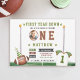 Feiern Sie Ihren kleinen MVP mit dieser charmanten Aquarellfußball-Einladung zum 1. Geburtstag, die für eine süße und sportliche "First Year Down"-Feier konzipiert wurde. Dieses spielerische und moderne Layout umfasst ein Paar Torpfosten, eine stilisierte grüne Feldgrenze und einen handbemalten Fußball, der eine Geburtstagsparty trägt und dem Thema eine skurrile Touch verleiht. Die Komposition auszubalancieren ist ein feines Baseball-Trikot mit der Zahl "1", illustriert in sanften Wasserfarben, um klassische Sportbekleidung nachzuahmen und das Design mit spielerischem Charme zu verankern. Die warme und einladende grüne, terracotta-braune und weiße Farbpalette verleiht dieser Karte ein freundliches, ganzjähriges Ambiente - perfekt zum Herbst- oder Fußballfest. Ideal für fußballbegeisterte Familien, diese Einladung Set den Ton für ein lustiges First Year Down Party voll von Spiel und Spaß. Personalisieren Sie sich einfach mit dem Namen Ihres Babys und den Party-Details, um einen Sake zu schaffen, den Sie für immer genießen werden.