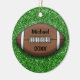 Eine perfekte Verzierung für den Fußballliebhaber, -trainer oder -spieler. Keramikverzierung mit Fußball auf Grashintergrund. Rückseite. Personifizieren Sie die Verzierung für ein spezielles Geschenk oder ein Andenken.