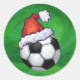 Fußball-Weihnachtsmannmütze auf Grün Runder Aufkleber