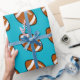 Umschlagpapier mit einem Sport-Fußball-Druck auf türkisfarbenem Hintergrund. Passen Sie dieses Objekt an oder kaufen Sie, wie es ist.