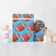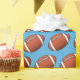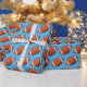 Umschlagpapier mit einem Sportfußballprint auf blauem Hintergrund. Passen Sie dieses Objekt an oder kaufen Sie, wie es ist.