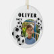 Fußball Ball Foto Sport Keramik Ornament. Ornament mit Fußbällen, Name und Foto in einem runden Rahmen.