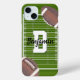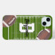 Diese personalisierte Telefonzelle hat einen Fußballfans-Design mit einem Fußballfeld und zwei illustrierten Fußbällen. Dieses Telefongehäuse mit einem Vor- oder Nachnamen und einem Initial personalisiert. Ein großartiges personalisiertes Sportgeschenk, um den Fußballfan in Ihrem Leben zu geben, der Kartenspiele spielt.