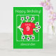 Senden Sie Geburtstagsgrüße an Ihren Fußballstar! Eine vollständig anpassbare Fußball/Fußball-Geburtstagskarte mit einem ganz roten Shirt in den Farben von Mannschaften wie denen aus Manchester, über einem Platz mit Fußbällen, die in alle Richtungen getreten wurden, mit goldenen Sternen. Personalisieren Sie den Geburtstagsgruß, die geschriebene Zahl, die durch einen Spitznamen ersetzt werden könnte, die Zahl, die hier ein Alter darstellt, sowie den Namen, der an den Namen eines beliebten Fußball-/Fußball-Clubs angepasst werden könnte! Hübscher, fröhlicher, positiver Fußballspass für den Fußball- / Sportfan!
