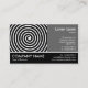 Eine Geschäftskartenschablone mit einem Schwarz-weißen umrandeten Seitenende mit dem oberen Bereich maskiert mit einer Foto- und Textplatte. Foto oder Kunstarbeitsbild auf dem links (die durch Ihr eigenes Foto auch ersetzt werden können), mit einer Platte für Namen und Details über das Recht. Raum für Firmennamen links von dem Seitenende mit Telefon, Netz und E-Mail treten mit Details über das links in Verbindung. Kann für anderen Gebrauch auch besonders angefertigt werden. Notiz: der Fotobereich wird maskiert, wenn Sie das Bild ersetzen, das Sie möglicherweise benötigen, um die Größe Ihres Fotos zu justieren.