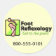Ein schlaues, aber beruflich aussehendes Design, das lautet: "Fußreflexzonenmassage. Get t0 the point." Geben Sie Ihren eigenen Firmennamen und Ihre Telefonnummer oder jeden gewollt Text ein. Die Reflexpunkte auf den Füßen spiegeln den menschlichen Körper wider, und das Wissen, wie man sie richtig findet und massiert, kann überlastete Wege öffnen und eine gute Gesundheit der Organe fördern.