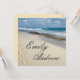 Fußspuren auf der Einladung zur Hochzeit am Strand