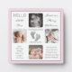 Mit diesem "Hello Little One"-4-Foto-Design, das den Namen Ihres Babys, die Geburtenstatistik, die Namen der Eltern und Geschwister enthält, erstellen Sie einen so einzigartigen Geburts-Sake wie Ihr wertvolles Kind. In der Mitte befinden sich zwei Vorlagenzeilen für Ihre persönliche Nachricht oder Sie können unsere verwenden. Diese Nachricht ist oben und unten auf den optionalen Fußabdrücken Ihres Kindes. Alle Text- und Hintergrundfarben können beliebig geändert werden. Hier in hellrosa und weiß dargestellt. Design by Holiday Hearts Designs (Rechte vorbehalten) mit Template-Platzhalter-Fotos via Unsplash.